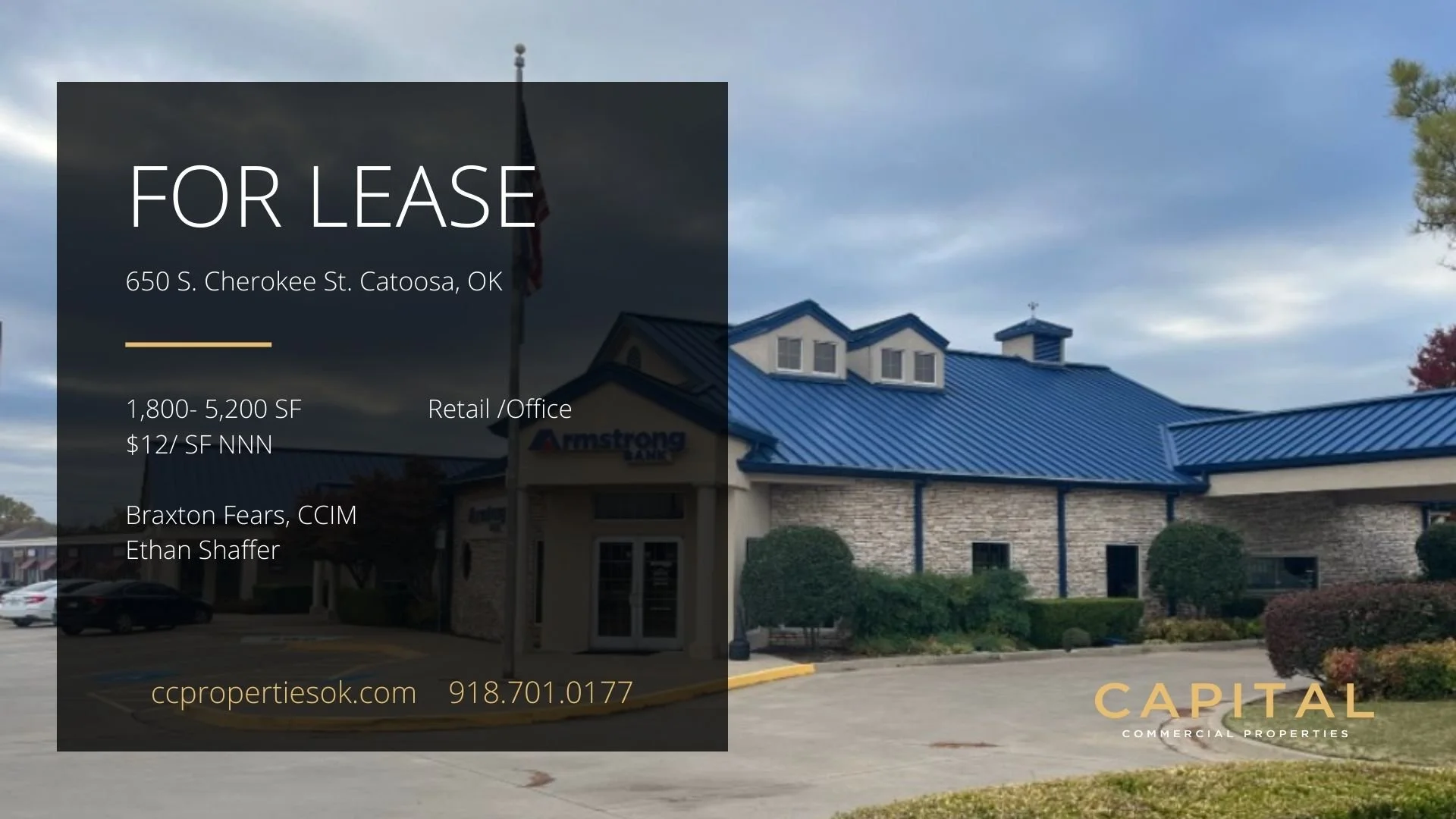 FOR LEASE Click image for flyer. Bixby, OK Retail For Lease Tulsa Warehouse For Lease Catoosa Retail/Office For Lease Downtown Tulsa Retail Distribution/Warehouse Lease South Tulsa Office