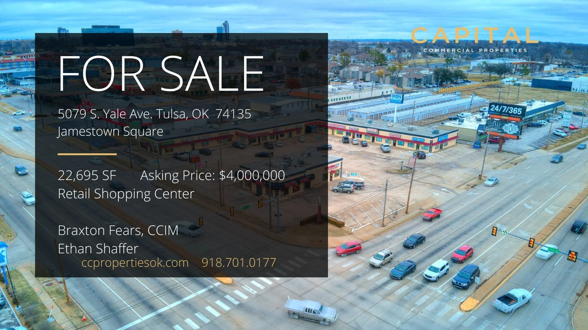FOR SALE Click image for flyer. South Tulsa Office For Sale Sapulpa Building/ Lots For Sale Downtown OKC Lot For Sale 6.81 Acres- Glenpool For Sale Glenpool Land For Sale 80 Acres in Sperry, OK For Sale 126 Single-Family Home Portfolio